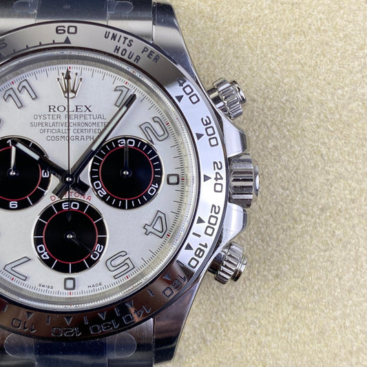 Daytona Panda ghiera ceramica quadrante bianco cinturino in acciaio