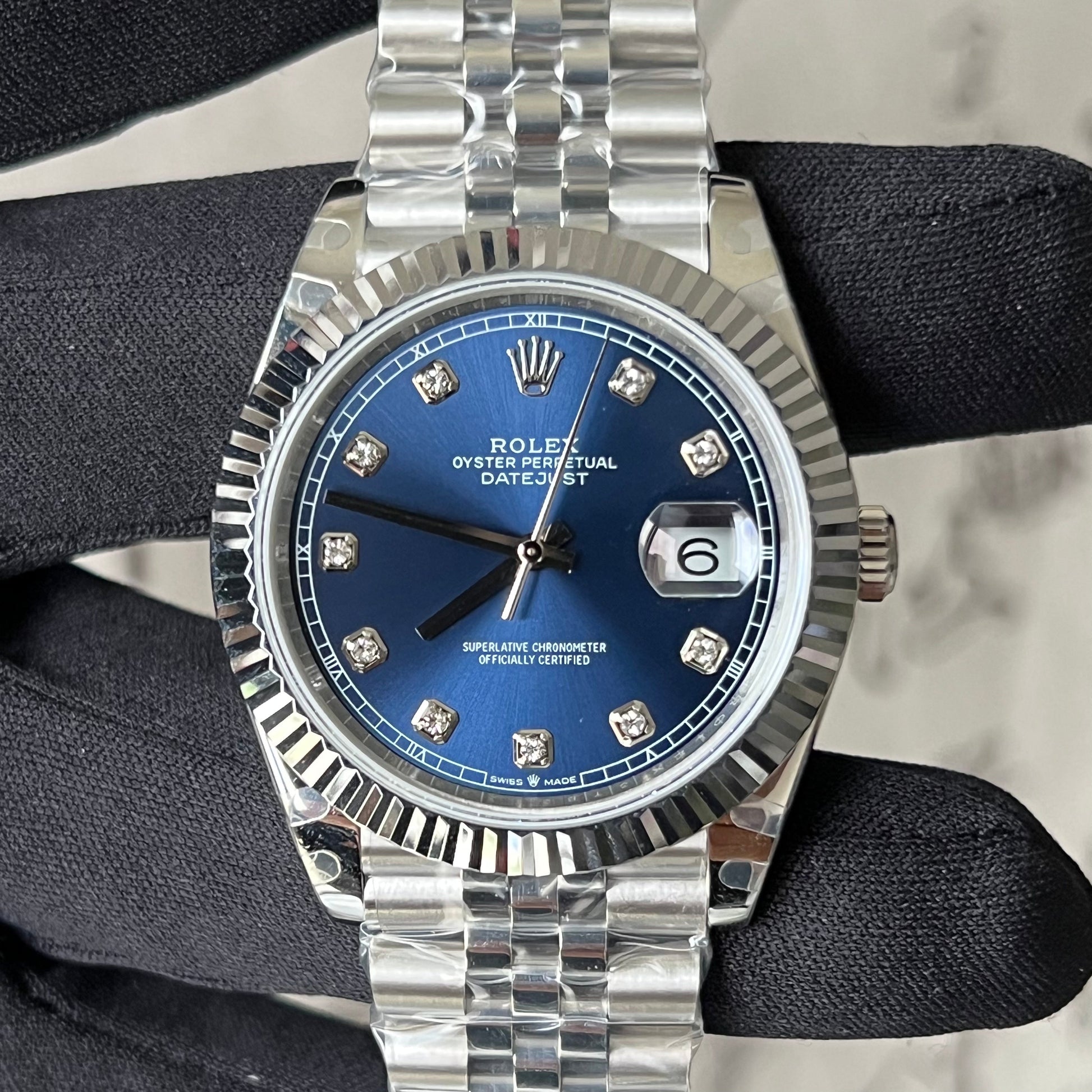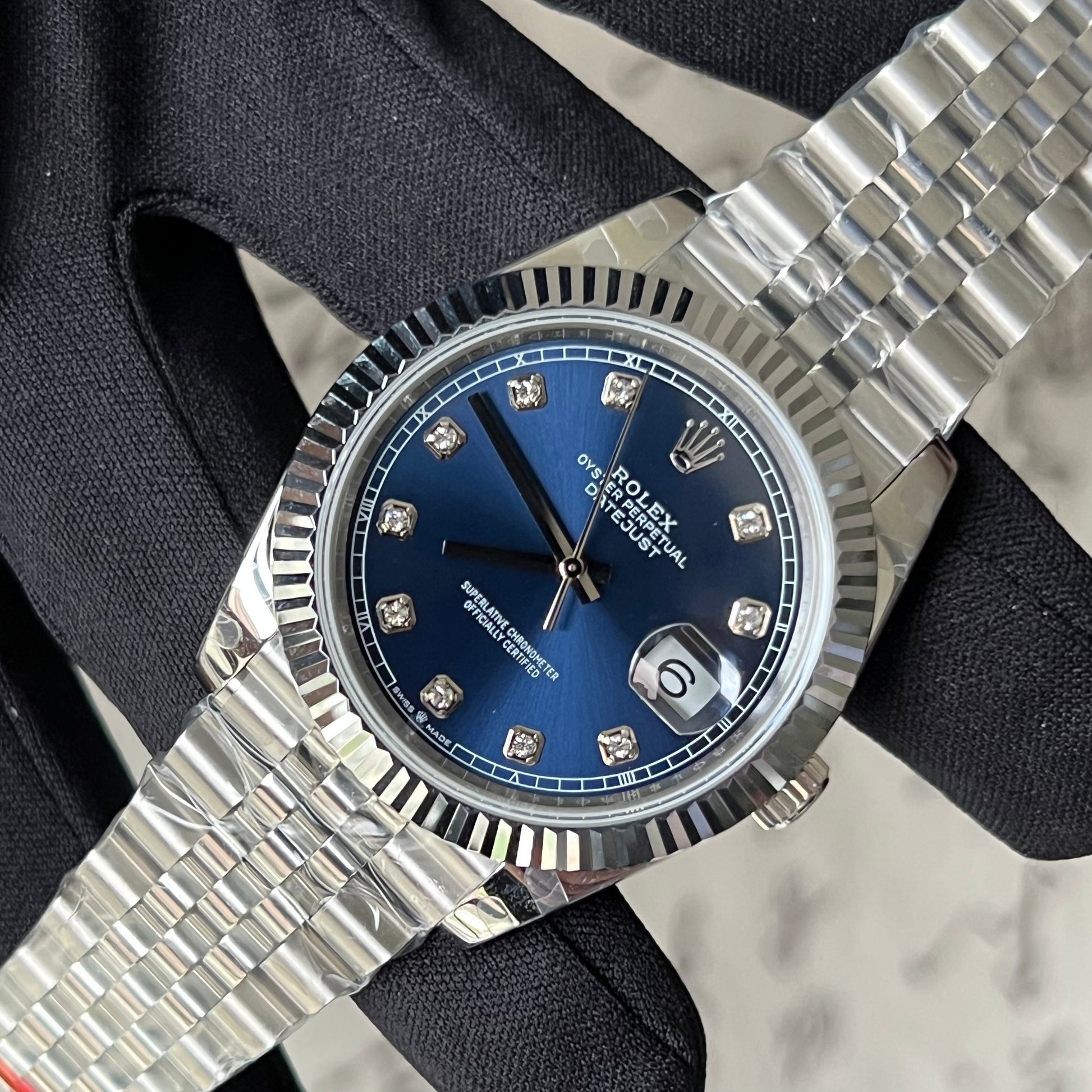 Datejust quadrante blu con diamanti e cinturino jubilee