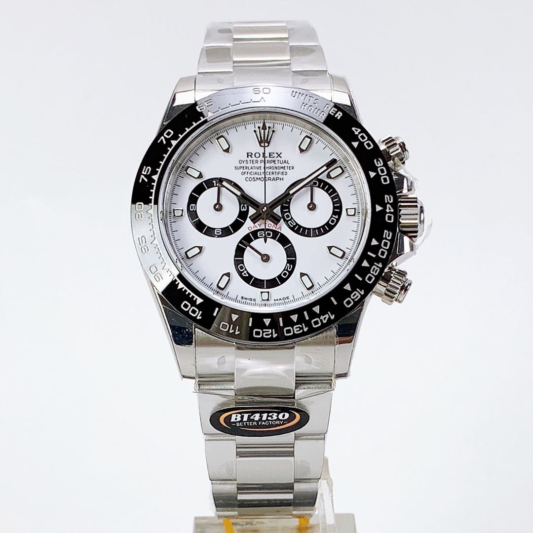 Per chi cerca una fedeltà assoluta all’originale in ogni minimo dettaglio (calibro, peso, finiture, micro-serigrafie interne, movimento clone Swiss identico all’originale), offriamo su richiesta i cosiddetti Supercloni.