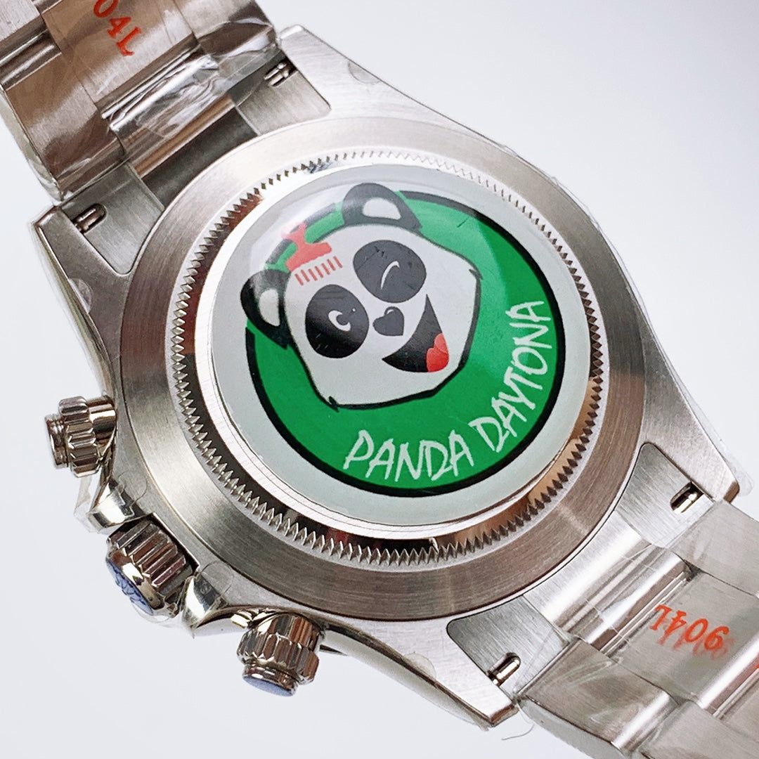 Daytona Panda ghiera ceramica quadrante bianco cinturino in acciaio
