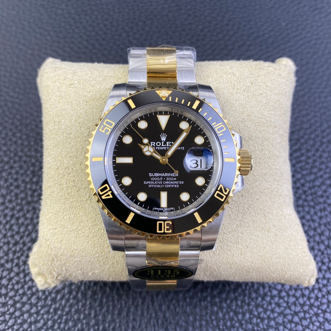 Submariner cinturino acciaio e oro 18k quadrante nero